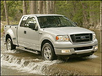 The rear shock absorbers were placed outboard of the frame rails - a segment exclusive - for improved control of body lean and a smoother ride. And the rear leaf springs are now 3 inches (76 mm) wide (20 percent larger than the 2002 F-150 and the same width as on the F-Series Super Duty lineup) to help reduce sway during cornering and considerably improve towing stability.