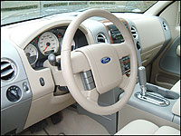 A faint click and a flash of the lights told me that the F150 was unlocked and ready to impress. And impress it did! The new interior design of the F150 is unlike any other utilitarian workhorse I have ever experienced. Yes, it's extremely spacious, yes it's extremely comfortable, but most of all, it's cool. The "cool factor" within the F150 is cutting-edge, if equipped with the Flow-Through Console and floor shifter. Although even without the Flow-Through Console the F150 interior raises the bar in the interior design and quality category for pickups. I have not seen a sportier, better designed truck interior and dashboard in any competing pickup.