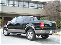 Great throttle response and traction must be countered with even better brakes. The Ying Yang of the 2004 F150 is 4-wheel antilock discs complemented by electronic brake force distribution. Less an opportunity to test the brakes while fully loaded or with a trailer in tow, I can nevertheless attest to the strength of this system in light duty situations. Stopping the big F150 is effortless, even when motionless immediacy is required. My shakedown of the brakes found them to be powerful, relatively fade free and easily modulated. Stops were surefooted and brief, considering the mass and inertia that had to be overcome.