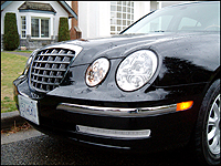 | The Kia design team adopted a European styling theme that has resulted in an exterior appearing to be a compilation of cues borrowed from Mercedes, Jaguar, Lincoln, Chrysler and Lancia. (Photo: Rob Rothwell, Canadian Auto Press)