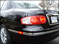 Combining with the electronic driver's aids are 4-wheel discs with ABS. Except for the aforementioned significant nosedive, the Amanti brakes provide strong, fade resistant performance that is easily modulated. Keeping control is a snap, even during panic braking on wet surfaces. The all-season P225/60R 16-inch tires gripped the pavement with great tenacity, providing stops that felt short and controlled.
