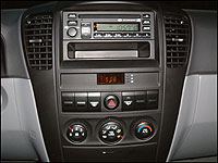 just below the controls for the standard 8-speaker AM/FM single CD audio head. Although steering wheel mounted audio controls are available in the higher trim levels, cruise control buttons are steering wheel situated on all Sorento trim levels.