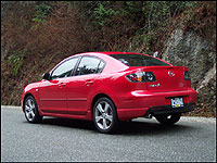 | I can say with a grin that the Mazda3, with its upgraded 2.3-L GT package, goes like there's no tomorrow. (Photo: Shawn Pisio, Canadian Auto Press) |
