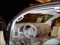 with pockets to hold a cell phone and a lot of other stuff, although one of the models inside the Stroh Riverplace office building had a bench seat where the center section could fold down and became a flat writing surface. The back of this section could open up into an enormous storage bin. This feature might work better, however, if the seat back could open into a writing tray for the rear seat passengers if someone was sitting up front in the center seat.