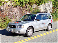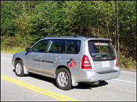 I was also impressed with its surprising ability in the corners. Respecting the fact that it competes head to head with compact SUVs and not sports cars, the Forester zigs and zags with the agility of a competent sports wagon, performing panic lane changes with little body roll and snaking through tight circuitous roadways admirably thanks to a 4-wheel independent suspension, variable-ratio power rack-and-pinion steering and 16-inch wheels and 215/60R16 raised black letter tires. It's totally stable at any speed, helped along no matter the road condition by its tractable full-time all-wheel drive system - a Subaru staple.