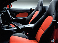 A black vinyl soft top comes standard, but if the Grand Touring Package is ordered the top becomes a richer looking cloth. Additionally black leather seats feature the same red stitching as the steering wheel, shifter and handbrake. This package is the entire options list.