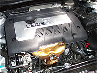 | The Spectra's 138-hp 16-valve 2.0-L four-cylinder engine gives it plenty of punch. (Photo: Trevor Hofmann, Canadian Auto Press) |