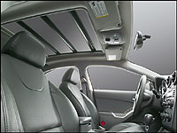 HVAC controls consist of three simple knobs, and the sound system looks well-laid out with the convenience of an in-dash CD player. Seats are well bolstered, and can be trimmed in optional leather. A unique feature to the G6 is its available panoramic glass-sliding roof. Four tinted glass panels that stretch the full length of the roof can retract to create an open-air targa-like experience. It's an interesting concept that sheds light and a lot of fresh air into what is often a mundane segment of the market.