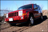 Grand Cherokee. It's two inches longer, however, which allows for a third row. The Commander and the Grand Cherokee share the same suspension, powertrain and 4x4 systems. Both incorporate rack and pinion steering and an independent front suspension. Built with the same underpinnings, the Commander is just as handy off road as its brother. The new SUV has earned the coveted Trail Rated designation, meaning it has been designed to certain standards when it comes to five categories: ground clearance, traction, maneuverability, articulation and water fording. So you can have a good time getting off the beaten track with six of your closest friends.