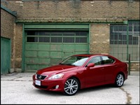 looking at the IS sets my heart rate racing, a feeling that appears evident with the other journalists present at the Toronto, Ontario press launch. Its clean, flowing front end styling is actually quite beautiful, a word I don't usually associate with cars this side of a Jaguar E-Type or Mark II sedan, Alfa Romeo Veloce coupe, BMW 3.0 CSi, or pretty well any pre-70s Ferrari. To say this about a Lexus is truly a turning point for Toyota's luxury division in my minds eye. The intricate folds of the rear taillights, that can't be fully appreciated in photos, are exquisite bits of automotive design, and then, stepping back to take in the entire rear three quarter view, the way the car's rakish profile plunges forward as if physically diving into the tarmac is pure athleticism incarnate.