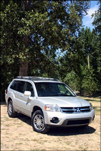 For the 2006 model year, Mitsubishi has given the world's best kept SUV-crossover secret a freshening, in hopes of making it more appealing to the masses. It has certainly lost some of its individuality in the transition, its proud aristocratic body-colour nose softened somewhat, given way to what appears to be a flatter, gray protrusion designed to blend in more with the grille openings at each side. Chrome trim now pulls the entire grille design together, embellished with a bold strikethrough broken at centre by a large, chrome tri-diamond badge.