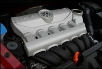 The other engine now featured in the New Beetle is a 2.5-litre inline-five. From a global perspective, this isn't the first inline five to be wedged under the Beetle's hood; European models were available with an odd 2.3- litre V5 (no, don't ask) that produced up to 170 horses. It was kind of a redundant model, given the Turbonium-infused 1.8T produced the same amount of power and torque, but it existed nevertheless. The inline-five is completely new, and shares some of its DNA with the V10 engine in its second cousin, twice removed, the Lamborghini Gallardo (no, really, that's what a VW salesman told me...).
