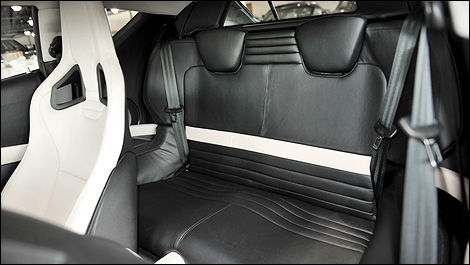 Let’s step inside where comfortable Recaro buckets meet with a wraparound dashboard and a small leather-trimmed three-spoke steering wheel. The middle section houses an Alpine multimedia system with touch-screen display, navigation, DVD playback, Bluetooth connectivity and audio input. Climate control as well as power mirrors, windows and door locks all come standard. So do the electric power steering and tire pressure monitoring system (no spare tire).