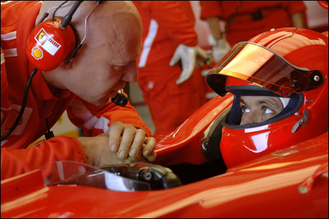 | Valentino Rossi at the wheel of the Ferrari Formula 1 car. |