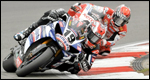 Spies then attempted to build on his advantage, but Haga was able to follow, never falling more than half a second behind and, with three laps to go, the Japanese veteran pulled alongside Spies and dove into the lead at the hairpin. Spies calmly placed his Yamaha back up the inside of Haga the Japanese veteran ran wide, immediately reclaiming the advantage and claiming victory in the first of two races.