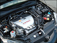 son I-4 i-VTEC de 2,0 litres à double arbre à cames en tête (DACT). Celui-ci produit 210 chevaux à 7800 rpm (rien de moins !) ainsi qu'un couple de 143 lb-pi à 7000 rpm. Avec un maigre poids brut de 1292 kg (2848 lb), la RSX peut vraiment déplacer de l'air lorsque le moteur tourne à plein régime, et ce, peu importe le rapport. Le plus beau dans tout ça, c'est que la Type S peut compter sur un ensemble de réglages après-vente pour contrôler les rênes de ce moteur racé. Si vous préférez y aller plus en douceur, vous n'avez qu'à desserrer les réglages et/ou à relâcher un peu l'accélérateur; la voiture gardera son sang froid et se comportera d'une manière plus civilisée. Voilà le véritable charme de la Type S, un loup vêtu d'une tonte de mouton - exactement ce à quoi en vient Hyato Mori.