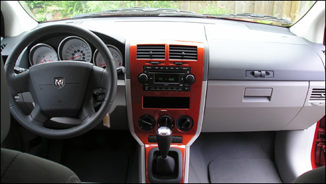 Habitacle acceptable... pour le prixLa qualité des matériaux est moyenne, car leur apparence fait un peu bon marché. Les plastiques sur les panneaux de porte et sur l'accoudoir irritent les coudes après un certain temps (les miens, en tout cas...). Les garnitures de la couleur de la carrosserie, dans la console centrale et sur les sièges font partie de l'équipement de série du modèle SXT Sport et ajoutent de la vie dans l'habitacle.