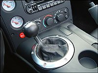 L'énorme puissance du V-10 est solidement contrôlée par une transmission manuelle à six vitesses, dont le levier est ponctué par un gros pommeau sphérique à la poigne ferme qui est parfaitement situé pour la main droite du conducteur. Le déplacement du levier d'un rapport à l'autre nécessite une commande résolue, ce qui résulte toutefois en des embrayages vifs et sûrs. Le grand espacement entre les différents rapports permet d'embarquer sur l'autoroute sans même monter en troisième. La puissance de dépassement est d'ailleurs tellement prodigieuse que cela en est presque scandaleux.