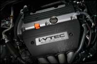 | | Honda CR-V 2007 (Photo: Philippe Champoux, Auto123.com) | Honda a volontairement choisi de ne pas offrir un V6 avec le CR-V. Sa logique est simple: la plupart des gens (un peu plus de 90 %) qui achètent ce type de véhicule recherchent un moyen de transport raisonnable et économique, ce pourquoi ils optent pour un moteur à quatre cylindres. Ainsi, le moteur de 2,4 litres produisant 166 chevaux et 161 lb-pi de couple est le même que pour la deuxième génération. Il est jumelé à une boîte automatique à cinq rapports -- la seule offerte. Ensemble, ils travaillent efficacement pour permettre de bonnes accélérations et de bonnes manoeuvres de dépassement. Or, quand le véhicule est chargé, il faut avoir le pied droit solide pendant longtemps. Les déplacements courants sont ultra simples et, par-dessus tout, assez peu dispendieux. J'ai obtenu une consommation d'essence moyenne de 10,5 L/100 km. J'ai bien apprécié la transmission, car ses passages rapides et fluides permettent d'attaquer à tout moment.