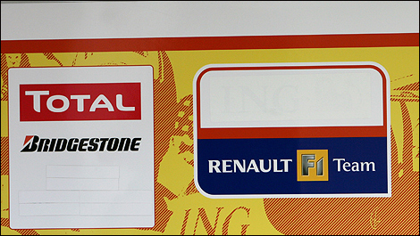 Renault garage on Thursday the Singapore-specification R29 cars no longer featured the company's logos on the monocoque sides.