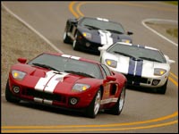Le gratin de l'automobile s'était donné rendez-vous le 18 août 2003 au circuit de Laguna Seca, en Californie, pourvoir les trois prototypes de la nouvelle GT. Des légendes de la course comme Dan Gurney (qui offre des tours de piste chaussé de vieilles sandales) ou Jackie Stewart (qui a servi d'aviseur technique pour le développement de la GT), sont de la partie. Alors qu'un premier groupe de journalistes assiste à la présentation technique du véhicule, un autre procède aux essais sur piste. Ford a, pour l'occasion, emprunté une Ferrari 360 Modena qui sera la compétition directe.