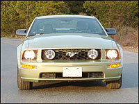 Pour contrer sa force de propulsion, la Mustang est équipée de série de puissants freins à disque ventilé aux quatre roues. La GT, plus précisément, bénéficie aussi de l'antiblocage comme équipement standard. Les freinages que j'ai effectués étaient bien droits et sécuritaires, peu importe la vitesse indiquée sur le compteur, et l'effort requis sur la pédale de frein est approprié pour un véhicule de performance, c'est-à-dire ni trop sensible, ni trop vague. Les splendides roues en alliage de 17 pouces (en option) peuvent également être bridées par un système de contrôle de la traction toute vitesse, offert de série sur toutes les Mustang. Un bouton sur le tableau de bord permet de désactiver facilement ce dispositif, laissant s'exprimer la pleine énergie de la voiture.