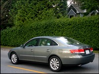 des scribes de la table, comme moi, furent impressionnés par la portée et la maniabilité de l'Azera. Encore une fois, je fais référence à Buick, mais pas les "bateaux" spongieux que la compagnie a produit pendant ses glorieuses années, mais plutôt aux berlines luxueuses américaines modernes qui font un excellent travail pour isoler les imperfections de la route tout en délivrant des dynamiques de conduites stables, quoique orientées vers le confort. L'Azera serait sûrement la meilleure Buick jamais construite, toutefois, offrant une maniabilité rehaussée et adoucissant encore plus les trous et les bosses. Et cela n'a rien à voir avec l'Amanti, de Kia, que j'ai conduit il y a environ deux ans, et qui était tellement molle que je me suis retrouvé malade en la conduisant. Non, la calibration de la suspension de l'Azera est idéale pour sa mission de voiture luxueuse, et il en résulte une voiture d'un confort ultime quand on la conduit en ville, et si le besoin s'en fait sentir, une voiture qui peut tirer son épingle du jeu sans problème sur des routes sinueuses prises à des vitesses élevées.