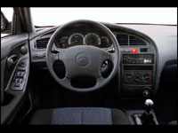 L'équipement de base est à l'image du reste de la voiture avec un penchant pour le côté sportif. Cela débute avec un volant et un pommeau de levier de vitesse gainés de cuir, radio AM/FM avec lecteur et des mêmes affreux boutons minuscules que la berline. Mais Hyundai m'a précisé qu'une nouvelle radio plus facile à opérer sera installée très bientôt. L'équipement comprend aussi un climatiseur, le régulateur de vitesse, les commandes électriques et d'excellents pneus Michelin de 15 pouces, un ordinateur de bord et des phares antibrouillards. Les freins ABS, la traction asservie et le toit ouvrant électrique sont disponibles en option seulement.