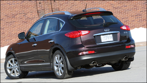Une G35x dans l'âmeDans le EX, on retrouve évidemment le même moteur que dans la berline G, mais avec 9 chevaux en moins. Le brillant V6 de 3,5 litres offre à la fois une puissance prodigieuse, avec 297 chevaux, et le rugissement d'un lion à plein régime. Des concurrents offrent des boîtes automatiques à 6 et même 7 rapports, tandis que la boîte du Infiniti ne se contente que de 5. Peu importe, elle fait du mieux qu'elle peut pour gérer les étalons enragés du V6, et réussit bien à cet égard.