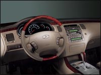 Pour rehausser davantage son niveau de luxe, dit Comsai, l'intérieur de l'Azera est "aménagé avec goût, avec d'attirantes garniture à grain de bois et des touches de métal distinctives."