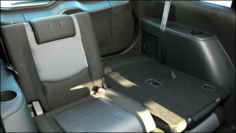 ConclusionLa Mazda5 a beaucoup d'avantages qui justifient sa popularité auprès des jeunes familles. Elle est spacieuse, économique et pratique, et son rapport prix-équipement est très intéressant. À mon avis, ses portes coulissantes sont un gros avantage par rapport à la concurrence actuelle.  | | Une fois la banquette arrière rabattue, le coffre propose un volume de chargement de 857 litres. |