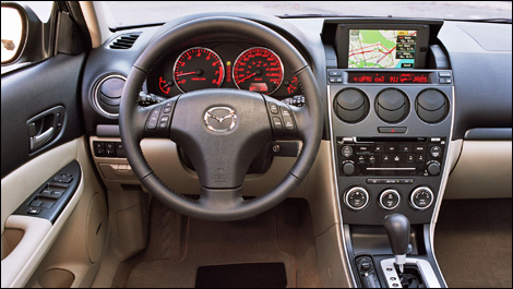 À l'intérieur, les choses se gâtent un peu plus. À ce chapitre, la 6 montre sans gêne son âge. Les plastiques noirs rendent l'habitacle très sombre, et leur entretien n'est pas des plus faciles car la poussière et les éraflures semblent amplifiées. Cependant, l'instrumentation présente une utilisation conviviale, sauf la radio dont les boutons sont particulièrement petits.