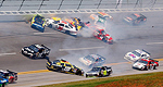 L’accident majeur si coutumier à Talladega a finalement été détrôné par l’accident d’un seul pilote, Ryan Newman, qui, à trois tours de la fin, s’est vu renversé sur le toit de sa voiture avant de glisser vers le mur extérieur de la piste puis de retraverser la piste avant de faire deux tonneaux et de s’immobiliser, toujours sur le toit, au centre.