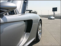 d'embrayage, dont la fixation se trouve à la base, ce qui me rappelait les Volkswagen Beetle du début des années 1970 et, d'après ce qu'on m'a dit, quelques-une des premières Porsche 911. Avec la pédale d'embrayage bien enfoncée, le moteur de 5,7 litres à carter sec a démarré avec le rugissement d'un V-10 de F1 -- de la vraie musique à mes oreilles. Une légère pression sur l'accélérateur m'a ramené sur terre; effectivement, il n'y a rien de tel que de sentir 600 chevaux et plus sous son pied pour aiguiser -- et maintenir -- la concentration. (J'ajouterais peut-être aussi le fait de savoir que cette puissance s'accompagne d'un prix tout aussi prodigieux, soit de 550 000 $CA.)