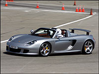 En pénétrant dans la GT, je me suis retrouvé bien enfoncé dans le siège du conducteur de cet habitacle enveloppant, la commande de l'allumage à ma gauche et le minuscule levier de vitesses à ma droite. Le riche cuir brun, l'étincelant fini en aluminium ainsi que le bloc central flottant soigneusement détaillé créent des univers uniques pour le conducteur et son passager. Ils distinguent aussi la GT de toute autre Porsche, voire de toute autre voiture sur le marché. Toutefois, certains éléments, tels que la disposition du tableau d'instruments ainsi que le volant à trois bras, semblent assez identiques à ceux de la Boxster et de la 911.