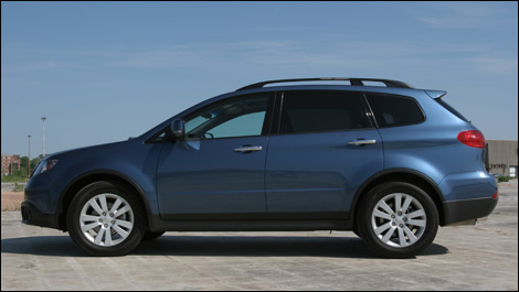 | | La version à 5 passagers nous semble un choix plus judicieux. | Polyvalence et sécuritéCes deux termes résument bien notre appréciation du nouveau Tribeca 2008. Il est spacieux, confortable et bien fini. Nous avons apprécié l'ergonomie de son habitacle et sa tenue de route sûre et rassurante. Nous avons tous les deux préféré la version à cinq passagers pour nos besoins, car la troisième rangée ne permet d'asseoir que de jeunes enfants. Le prix de base du Tribeca 2008 est de 41 995 $. La version Limited se détaille à 45 195 $ et la version Premier à 7 passagers se détaille à 52 495 $. Tenue de route Ergonomie Polyvalence Banquette de la 3e rangée Prix face à la concurrence Design extérieur en manque de personnalité Aucun Photos : Philippe Champoux