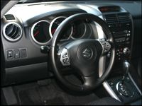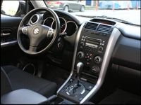 sur la route comme sur piste, ou dans l'habitacle, avec des matériaux de qualité supérieure, un assemblage précis des panneaux intérieurs, ainsi que des interfaces, boutons, molettes et commandes de haute qualité. Je reviendrai sur la portion de conduite de cet essai dans une minute ou deux, mais pas avant de vous parler de la décoration agréable du Grand Vitara. Tout d'abord, quand on prend place derrière le volant, le panneau de cadrans à triple lunette propose une apparence chic, en plus d'être hautement lisible, et sa fonctionnalité anti-reflets fut très appréciée lors de notre long après-midi d'activités. Le volant est également supérieur à la moyenne, mettant à votre disposition un assortiment complet de commandes du système audio et du régulateur de vitesse sur ses branches situées à 9 heures et à 3 heures, et son contour est gainé d'un cuir de haute qualité et bien ajusté, qui semble aussi solide que tout le reste du véhicule.