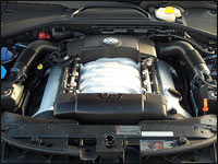 Effectivement, un V8 Volkswagen est quelque chose d'assez inhabituel dans le vocabulaire automobile. Mais qu'à cela ne tienne, ce moteur une superbe pièce d'ingénierie, possédant notamment cinq soupapes par cylindres, ainsi qu'un système de gestion Bosch et un système de calage variable des soupapes. Oui, on est loin du vieux 2,0 litres qui survit toujours sous le capot des Golf, Jetta et New Beetle. D'une cylindrée de 4,2 litres, ce moteur prend aussi place sous le capot du Volkswagen Touareg V8, du Porsche Cayenne S et des Audi S4,