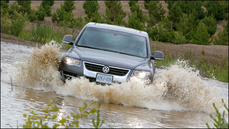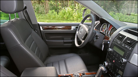 Haut sur pattesDans les faits, on grimpe dans le Touareg. Une fois dans l'habitacle, on note peu de changements. On retrouve un bon dégagement pour les passagers et un rangement pratique. L'habitacle est chaud et nécessite qu'on utilise la climatisation de façon constante, ce qui est probablement dû aux matériaux et aux surfaces vitrées généreuses. Heureusement, la climatisation est efficace. Les amateurs de grand air se consoleront, car on peut utiliser le toit ouvrant pour aérer l'habitacle : quand on l'ouvre, très peu de turbulences viennent déranger les passagers. La chaîne audio de qualité satisfera les mélomanes grâce à sa sonorité, sa convivialité et la bonne insonorisation du véhicule.