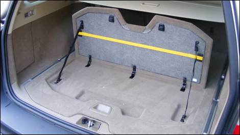L'aire de chargement arrière comprend le système de rails et d'ancrages coulissants Cargofix de Volvo -- rien de mieux pour arrimer solidement et de façon sécuritaire les objets que l'on charge. Un panneau à même le plancher se soulève pour découvrir de petites pochettes secrètes pouvant accueillir des items de valeur. Enfin, les sacs d'épicerie ou de magasinage peuvent être fixés au dos de ce même panneau rabattable grâce à des crochets et une courroie élastique. Voilà des touches astucieuses qui permettent d'éviter bien du drame...