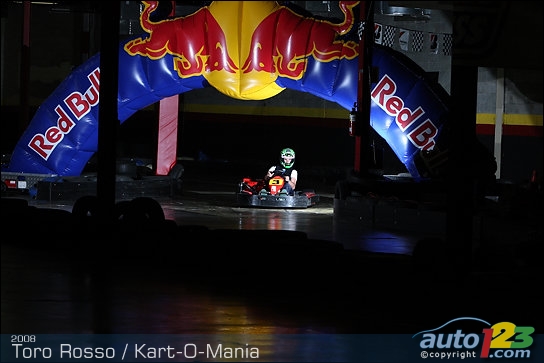 L'équipe de Formule 1 Toro Rosso fait une visite chez Kart-O-Mania de Montréal, le 4 juin 2008 dans le cadre des activités du GP du Canada. Sur cette photo le pilote d'essai chez Force India, Tonio Liuzzi.