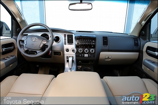 L'intérieur est identique à celui de la Tundra et présente une ergonomie sans faille ainsi qu'une belle qualité de matériaux. Le design est toujours aussi intéressant et se prête bien à un utilitaire de ce format. Malgré l'absence d'un système de navigation, l'équipement offre juste ce qu'il faut et en quantité suffisante. Le programme Bluetooth fonctionne bien et est efficace tout comme la chaîne audio. La ventilation et le chauffage sont séparés en deux zones et font un travail honorable; par contre, considérant la taille du véhicule, trois zones auraient été appropriées.