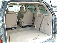 A few years back Honda pioneered a third-row seat that disappeared into the floor. Ford, while initially seeming like a copycat in adopting the tumble under arrangement, truly has taken the ease-of-operation factor a step or two forward. With the consecutive pull of a couple of straps, the Freestar's third-row seat does a 180-degree flip and accordions backward into the tub, leaving a flat floor behind the second row of seats. The headrests don't even need to be removed. For maximum cargo hauling capacity, the second row of seats can easily be removed. Doing so will allow 3,795 liters (134 cubic feet) of whatever you desire to be stacked in the rear.