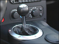 | The six-speed shifter knob sits atop a short throw lever, and clicks into first gear without hesitation. (Photo: Trevor Hofmann, Canadian Auto Press) |