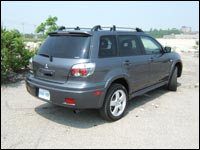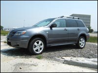 compact SUVs. 2005 has brought a revised front fascia and rear end treatment. This vehicle would probably better fit the description of a tall station wagon over that of an SUV. The Outlander has many of the SUV attributes in a smaller package: fender flares, large wheel wells and a tall step-in. What I like is that these elements are matched to a very car-like hood, grille and tailgate.