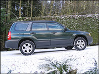 front and MacPherson strut with parallel link in the rear, is definitely above the class average. The ride is stiff enough to take tight turns with ease, but not so rigid that everyday driving becomes uncomfortable. I found the 2.5X SE to have the strength and comfort of an SUV, with the precision and agility of a sedan, due to its tall wagon-like structure enhanced by the powertrain and platform of the Impreza compact car. It drives and handles well. Great handling can't be had without great rubber, so the Forester boasts a set of 215/60 all-season tires on 16-inch steel wheels. Behind the rims is a set of front ventilated discs with dual piston calipers and rear drum brakes, along with four-channel, four-sensor, four-wheel ABS, so the 2.5X SE provides decent braking capability. As mentioned,
