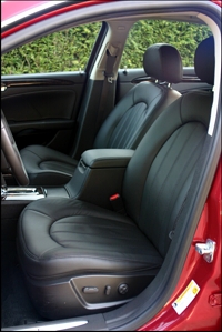 I suppose I felt the same way about the Lucerne CSX driver's seat. Sure it's multi-adjustable via eight ways, with four-way lumbar support adjustment (and two-driver memory), but I still couldn't get comfortable. Its seatback must have been formed to accommodate someone else's frame, as it pushed out where I didn't like it to and sunk in where I needed support, and speaking of support it lacked a great deal where side bolsters should have been, so I always felt uncomfortably exposed, and when pushing the car's limits in the corners, had to use my arms to hold my butt and back in place so that I wouldn't flop around in my seat. I don't know how you drive, but I find I get much greater control out of a car when both arms are relaxed with hands resting on the steering wheel at the 9 and 3 o'clock positions.