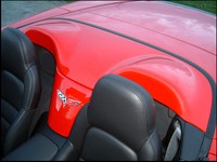 yep, prior to model year 2005 a powered top last kept rain off Corvette hides in 1962. Fortunately today's version is much more effective and efficient than the canvas lid of yesteryear. Available in Canada in two shades of gray, basic black or beige, the modern top seals tightly to hold rain and wind at bay while providing satisfactory vision through its glass rear window. Best of all, after manually unlatching the leading edge of the roof from the windshield frame, servo motors take over and drop the top in less time than it took me to type this sentence - or thereabouts. With its fabric and glass shelter safely stowed beneath a beautifully contoured  | | With its fabric and glass shelter safely stowed beneath a beautifully contoured hard shell tonneau, this iconic example of American muscle enters a new era. (Photo: Rob Rothwell, Canadian Auto Press) |