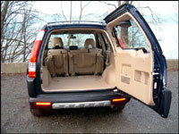 absence of a spare wheel within the cargo environ contributes to the illusory grandeur imparted by the CR-V's cubed loading bay. Honda has mounted the vehicle's spare wheel outside the cabin on the rear door, ala Land Rover. With its rear seat in place the CR-V renders 948 litres (33.5 cu ft) of cargo volume. Fold the 60/40 split rear seat forward and the volume jumps to an impressive 2,038 litres (72 cu ft) - that places the CR-V among the top in its compact SUV class for cargo capacity. The esteemed "top in its class" grouping is also where the CR-V finds itself when build quality is measured.