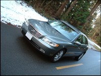 time of only 6.6 seconds. One spin behind the wheel confirms the car's eagerness to perform. Anything more than a light foot on the throttle when red turns to green induces wheelspin and the intervention of the Hyundai's Electronic Traction Control (ETC), which along with Hyundai's Electronic Stability Control (ESC) is standard equipment. Off-the-line pick up is sharp to say the least, and passing performance is stellar at any speed, giving the Azera the potency to pull ahead of its many competitors (or at least alongside a 280-horsepower Avalon) by more than price alone. The  | | The Azera's well-bred mill is fused to an extremely smooth 5-speed automatic gearbox. (Photo: Rob Rothwell, Canadian Auto Press) |